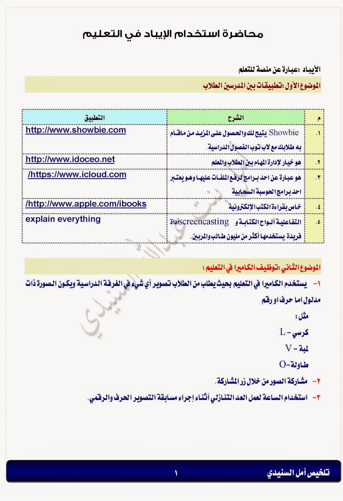 أمل عبدالله السنيدي استخدام الأيباد في التعليم